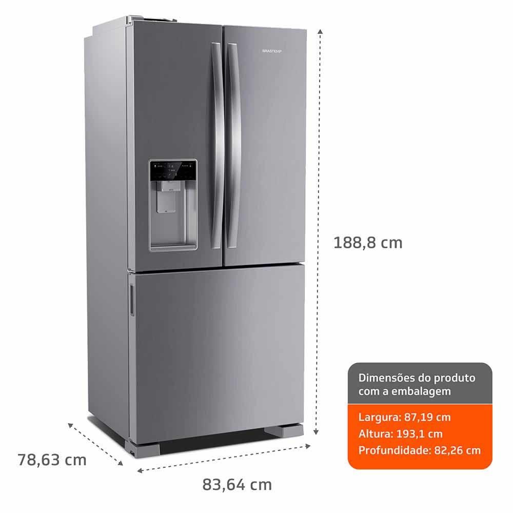 Refrigerador Brastemp Frost Free French Door Água e Gelo na Porta 515 Litros Inox BRH85AK