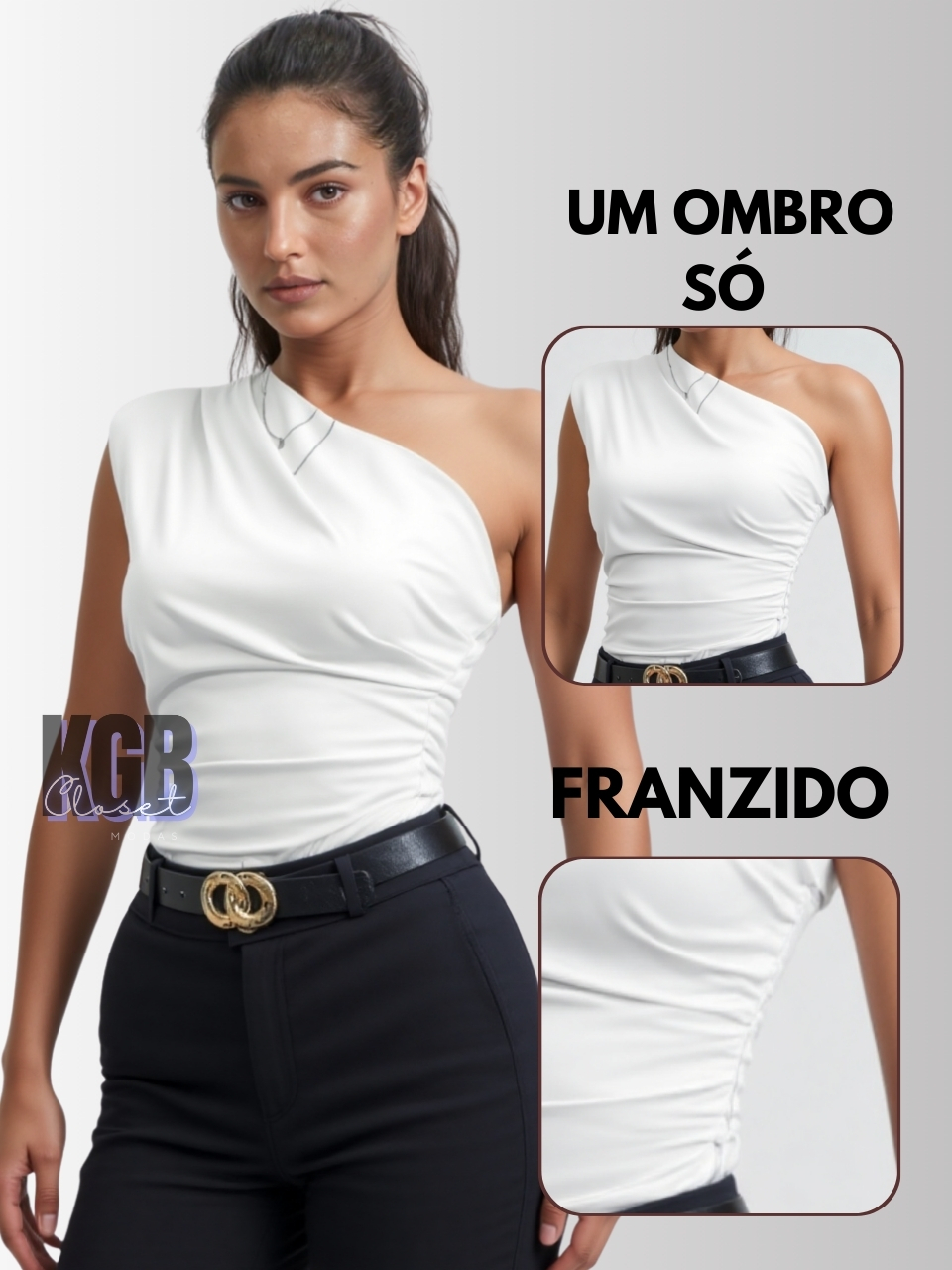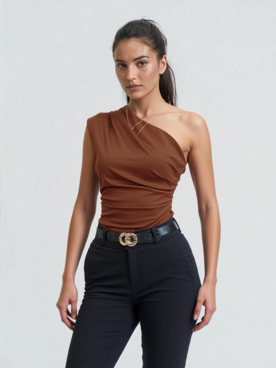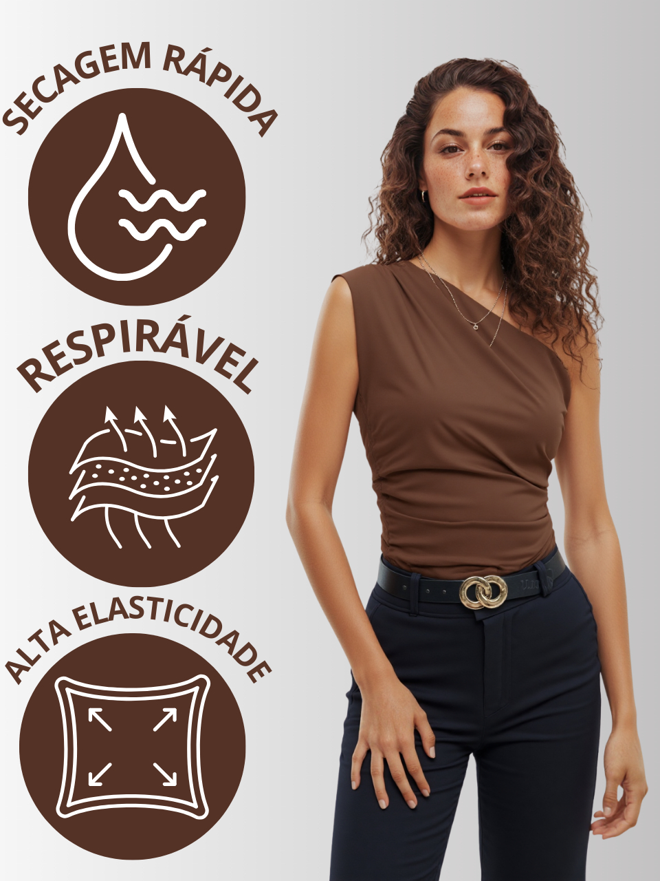 Regata Feminina Mula Manca Assimétrica Franzida Plissada Natal Casual Ombro Único Elegante