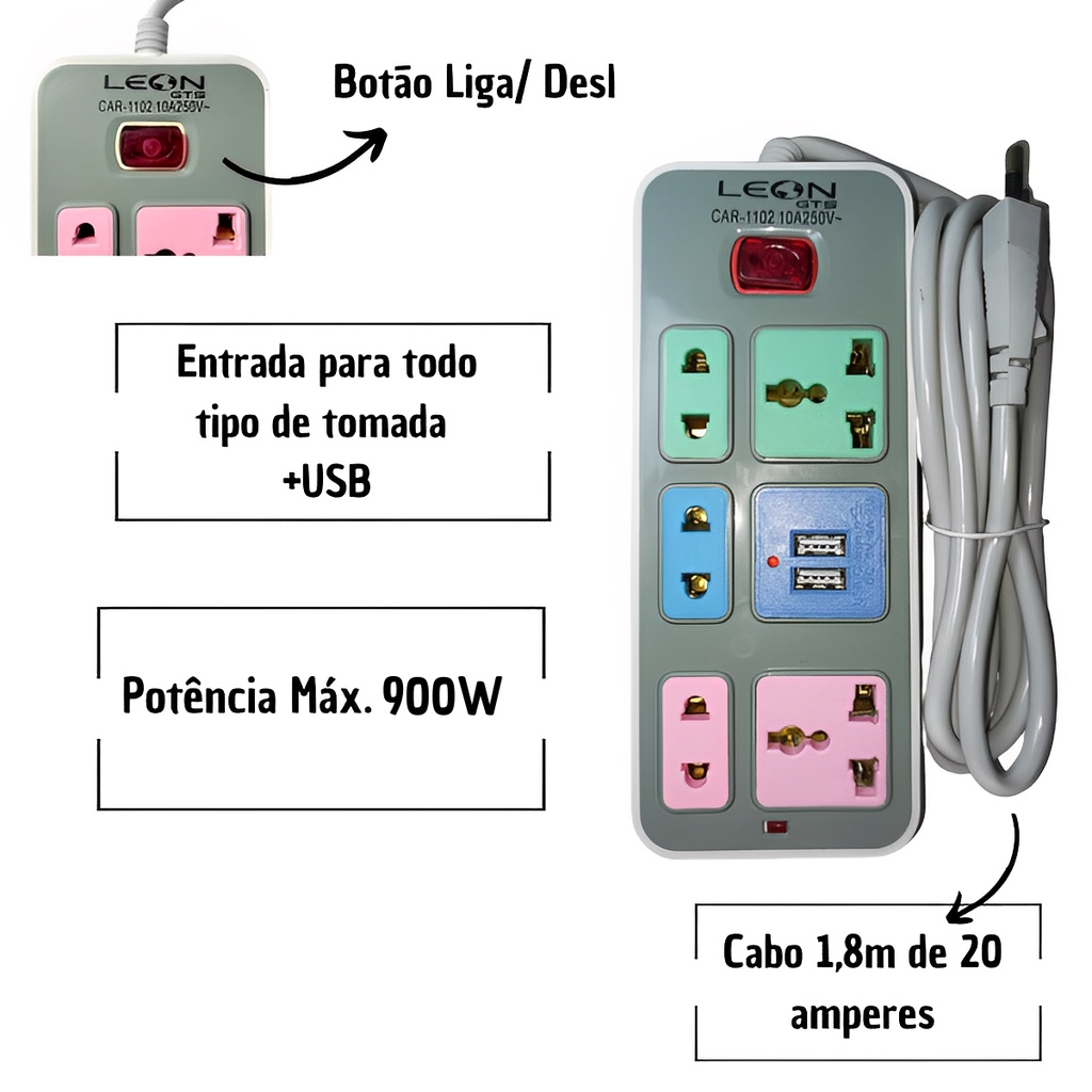 Regua De Linha Bivolt Universal Multifuncional Com Usb