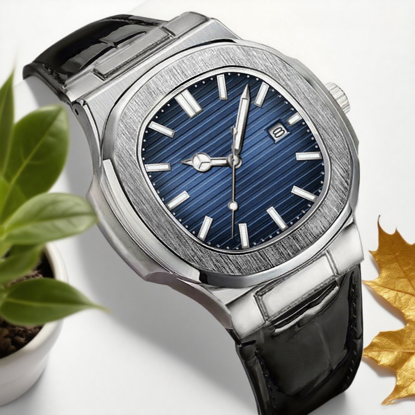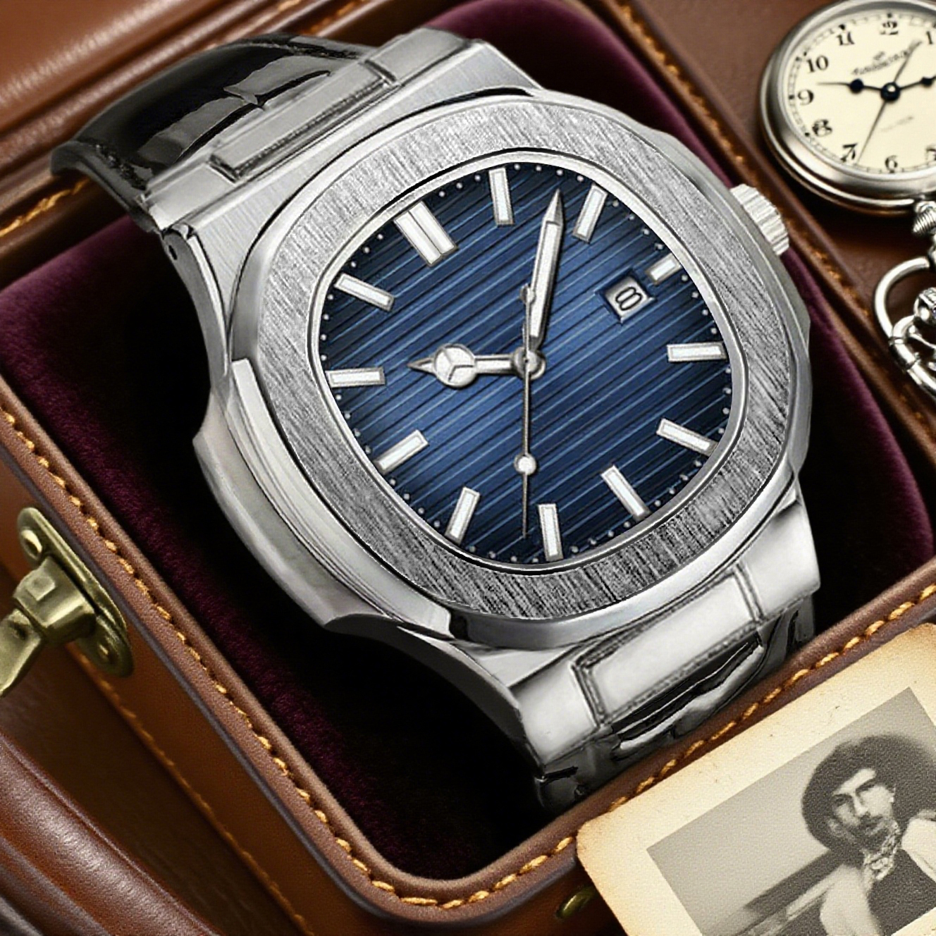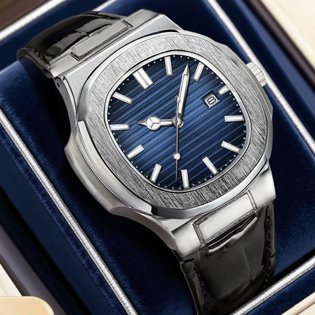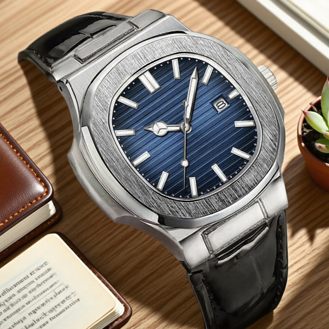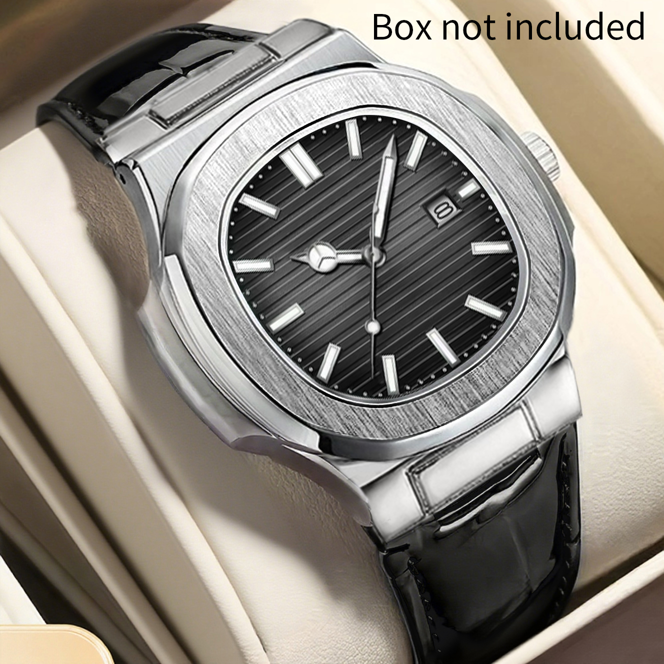 Relógio Calendário Masculino Com Pulseira De Couro Genuíno-Movimento De Quartzo Elegante Presente De Feriado