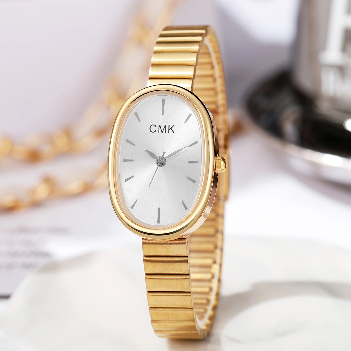 Relógio De Ouro Magnético Com Escala Listrada Chique Para Mulheres , Presente De Feriado , Uso Diário , Festa , Escritór