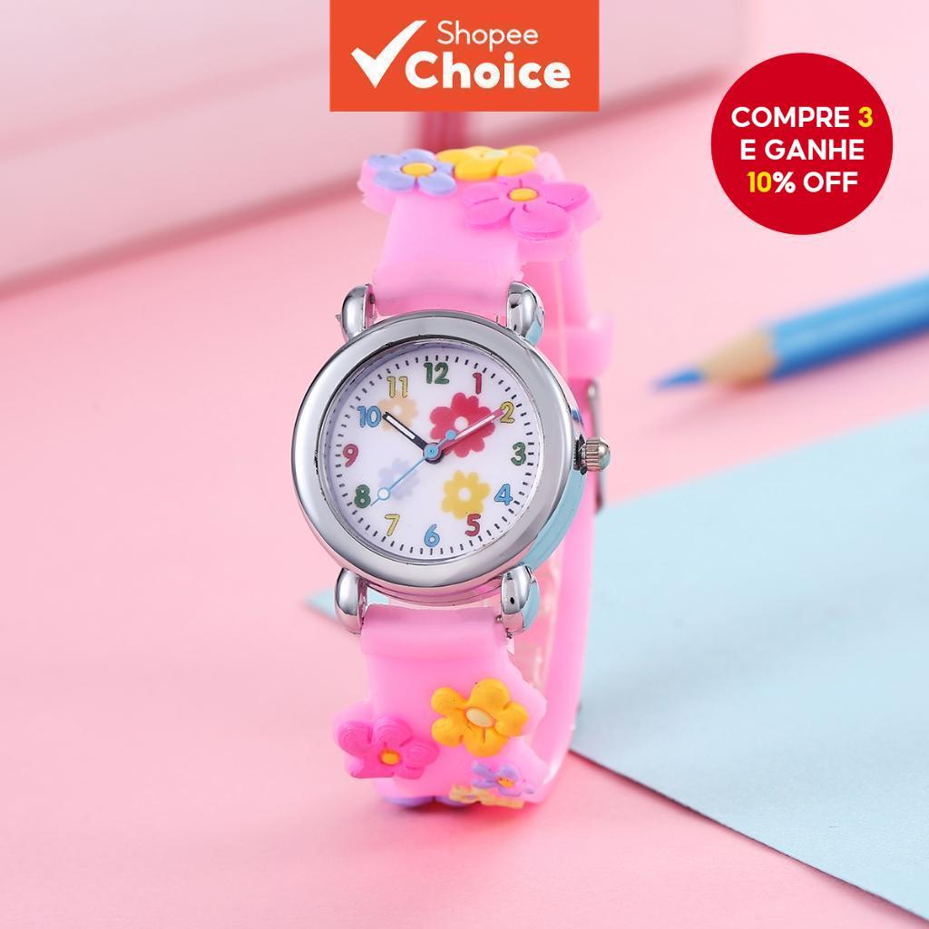 Relógio De Pulso De Estudante De Plástico Infantil , Digital De Quartzo Com Padrão De Flor De Desenho Animado Bonito Par