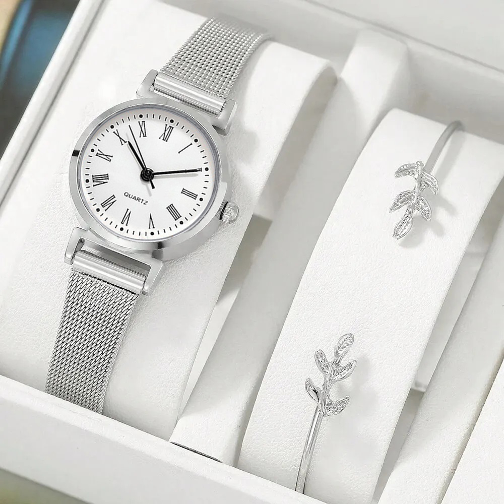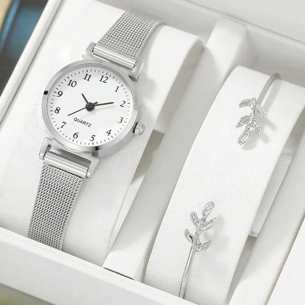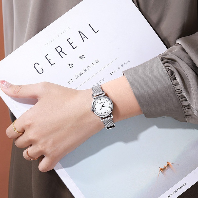 Relógio De Quartzo Feminino Pequeno Original Com Pulseira De Malha De Aço Inoxidável
