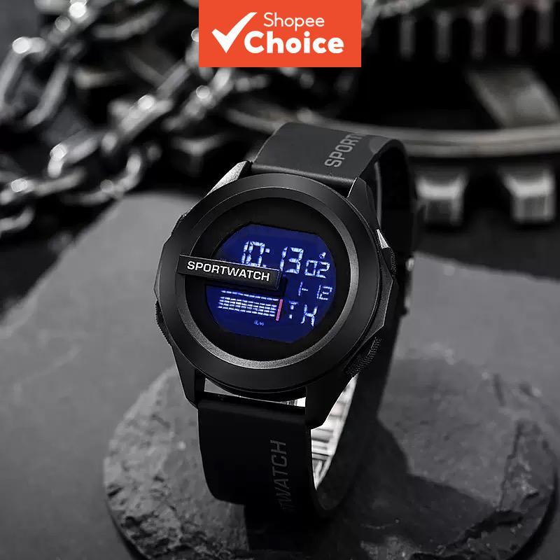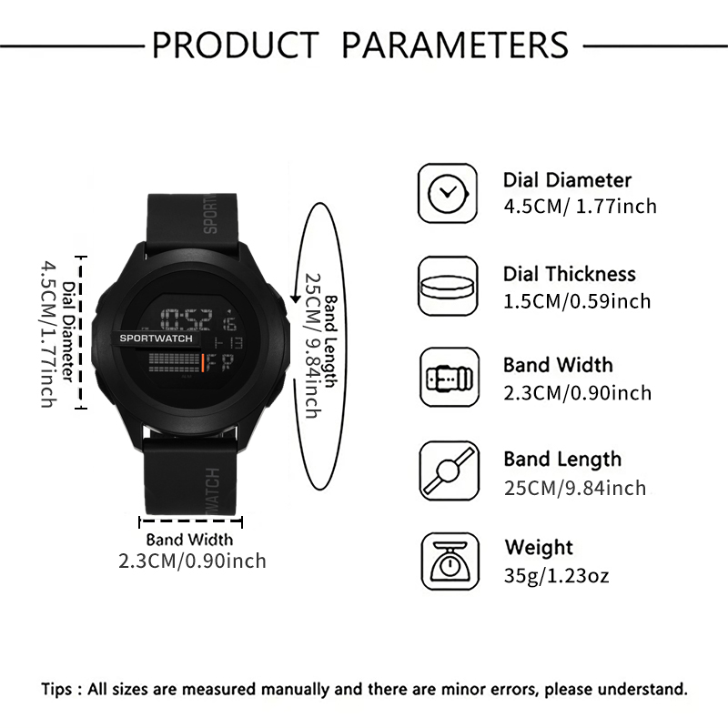 Relógio Digital Esportivo Masculino , Display Retroiluminado Redondo Com Cronógrafo De Alarme , Pulseira De Silicone Res