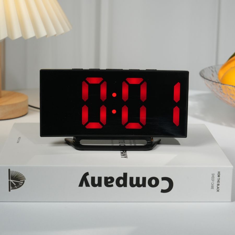 Relógio Digital LED 15.5x4.5x8.5 Fonte Vermelho Curvado Espelhado De Mesa Com USB E Temperatura