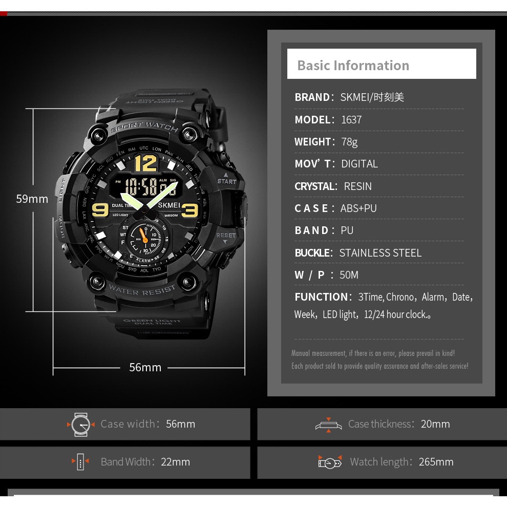 Relógio Digital Militar SKMEI 1637 , Design Vin tage À Prova D'água De 50 M , Pulseira De PU Para Esportes E Casuais