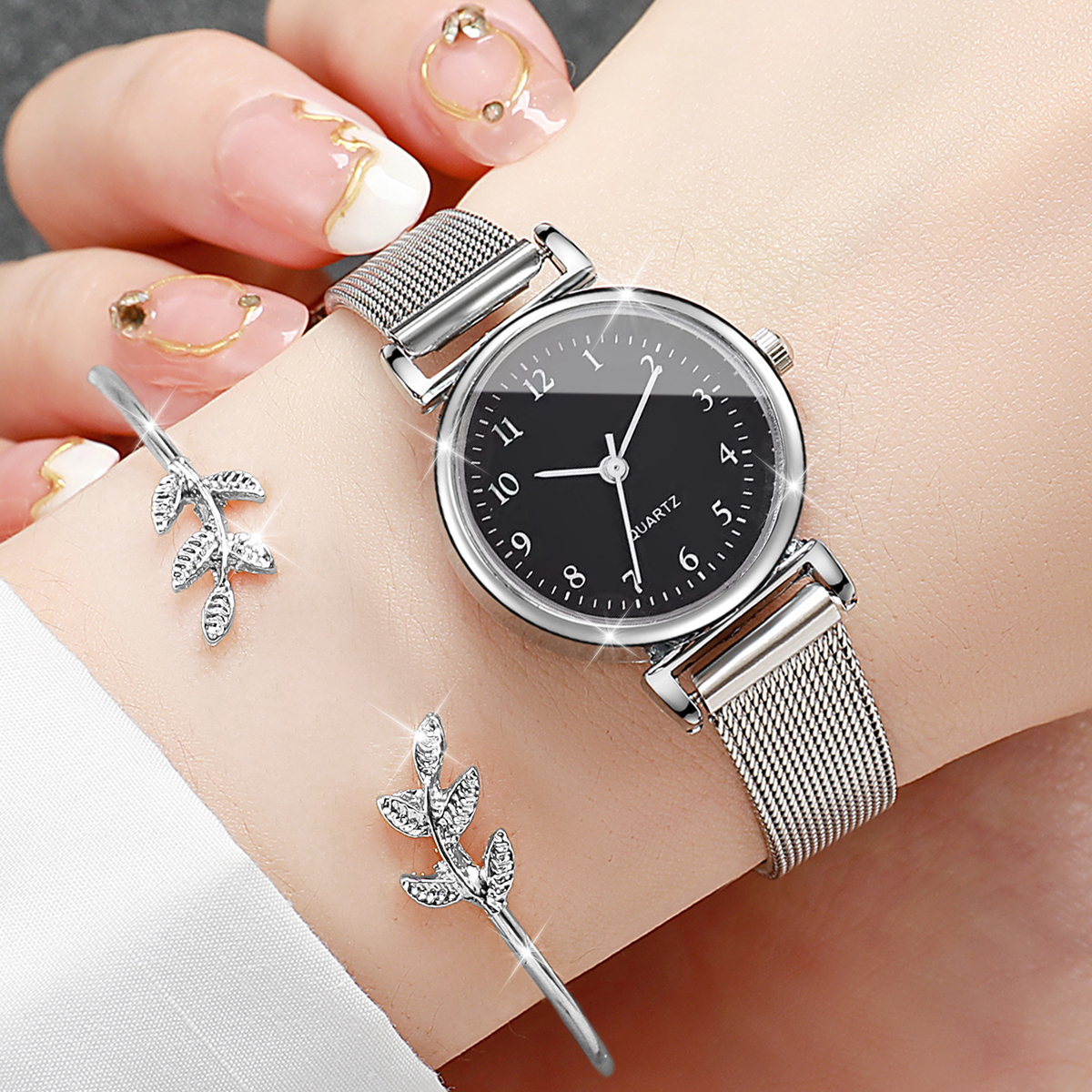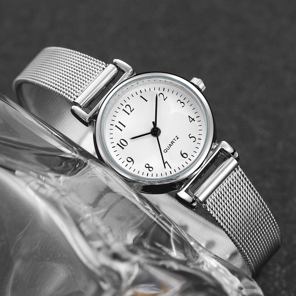 Relógio Elegante Com Micro Mostrador , Pulseira De Malha De Aço Inoxidável , De Quartzo Para Trabalho Feminino , Itens E