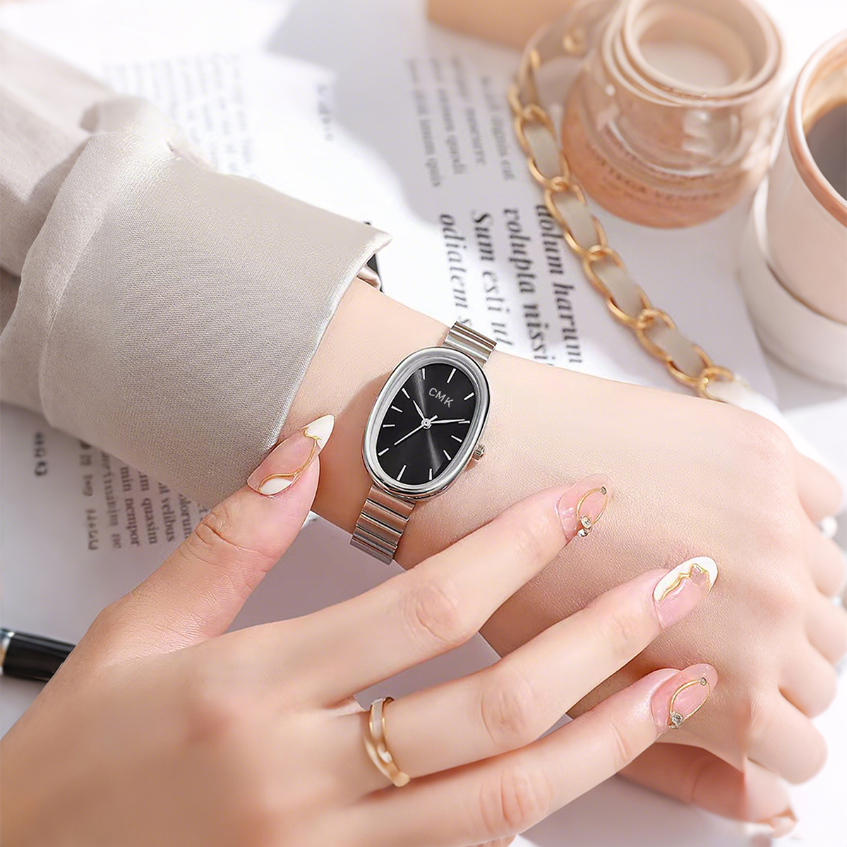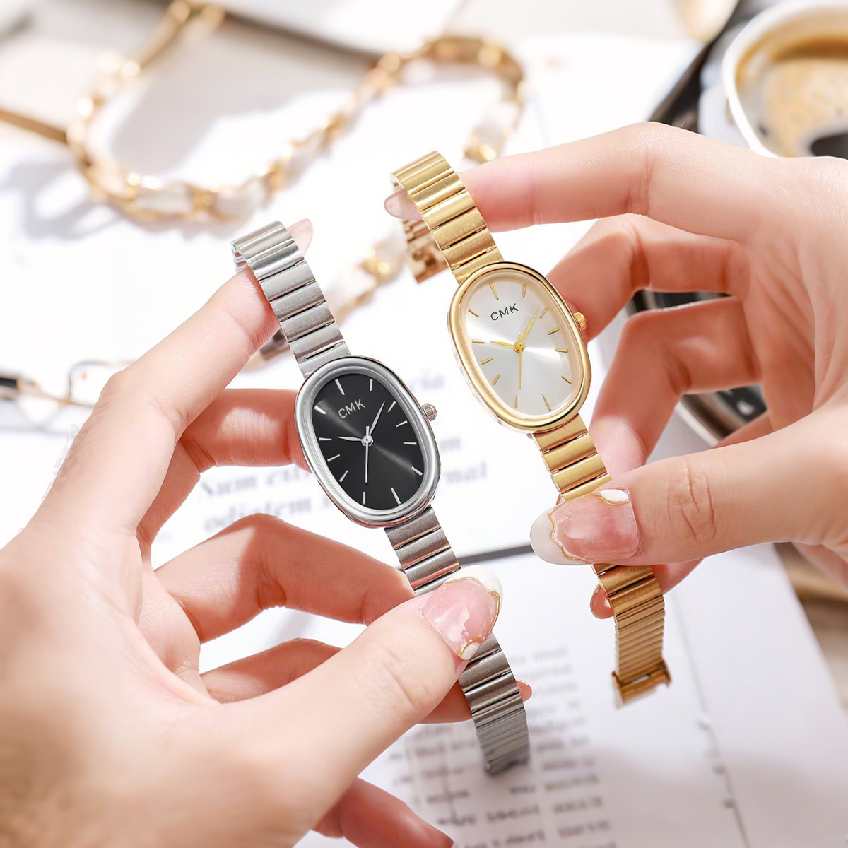 Relógio Feminino Chique Com Escala Listrada Magnético Para Mulheres Dourado-Um Presente De Feriado Elegante Da Moda