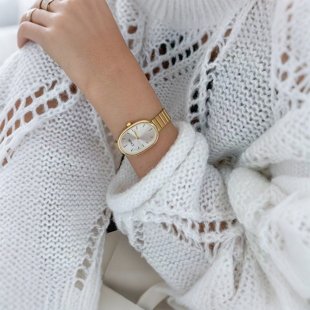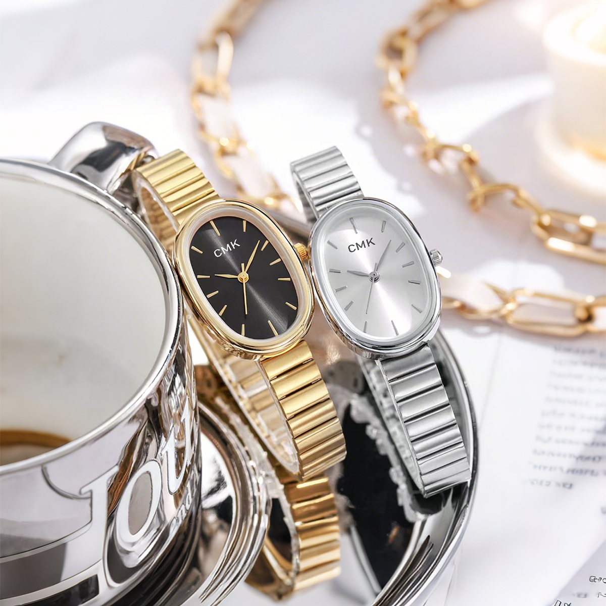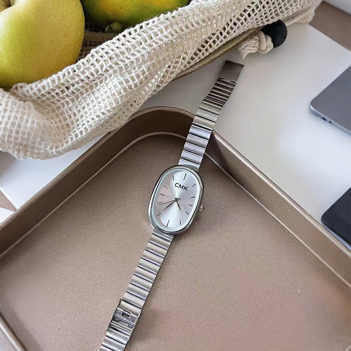 Relógio Feminino Elegante Com Design Oval E Pulseira De Aço Inoxidável Para Uso Diário