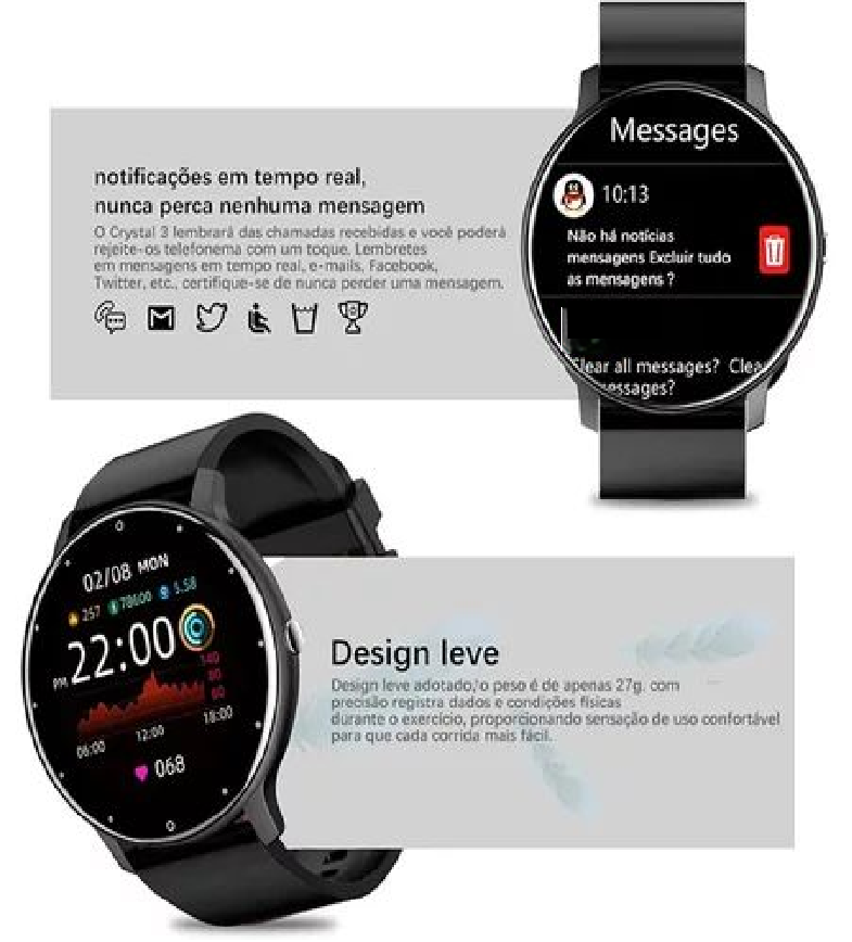 Relógio Inteligente ZL02D Pro com Tela Circular Bluetooth à Prova D’Água Compatível com iOS Android – Edição Primavera
