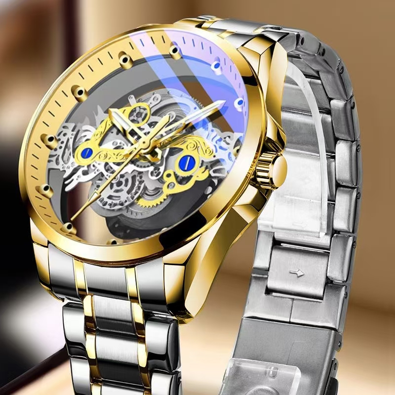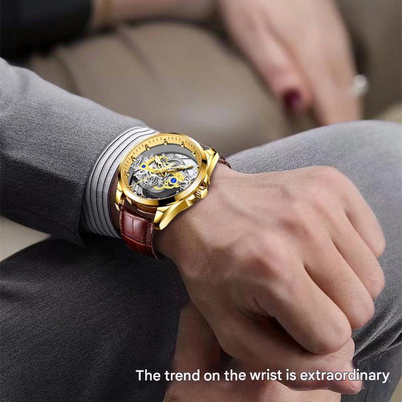 Relógio Masculino Oco Transparente Quartzo Luminoso À Prova D'água Com Estilo Automático Para Homens
