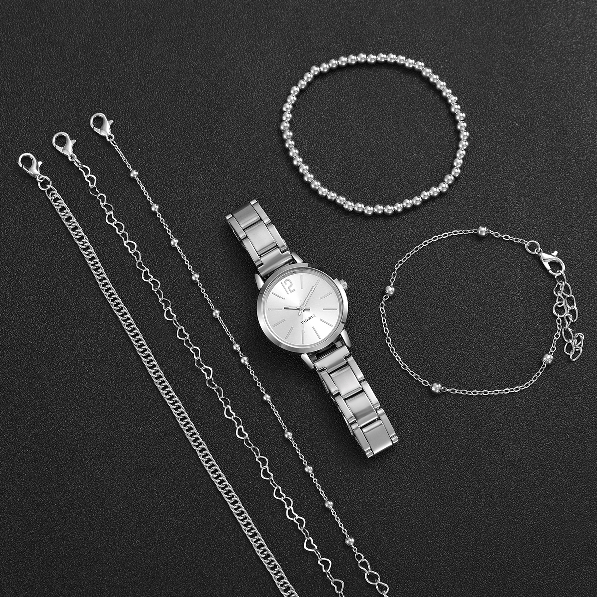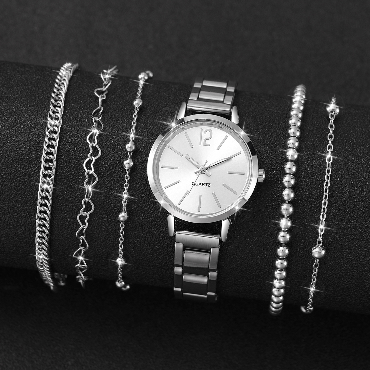 Relógio de pulso feminino Fashion Steel Band Pulseira de Quartzo Silver Beaded Chain Bracelet (Sem Caixa)