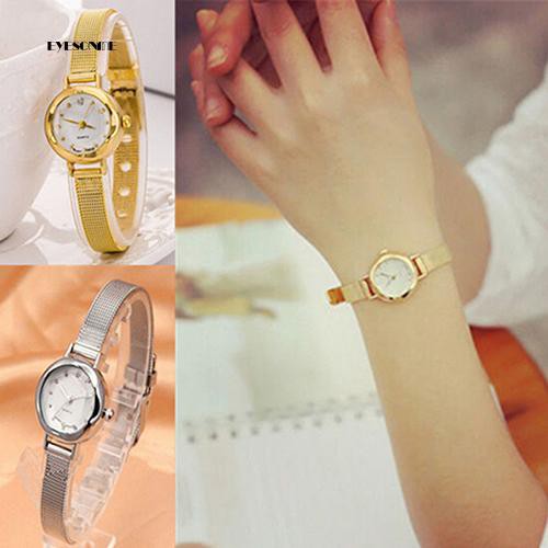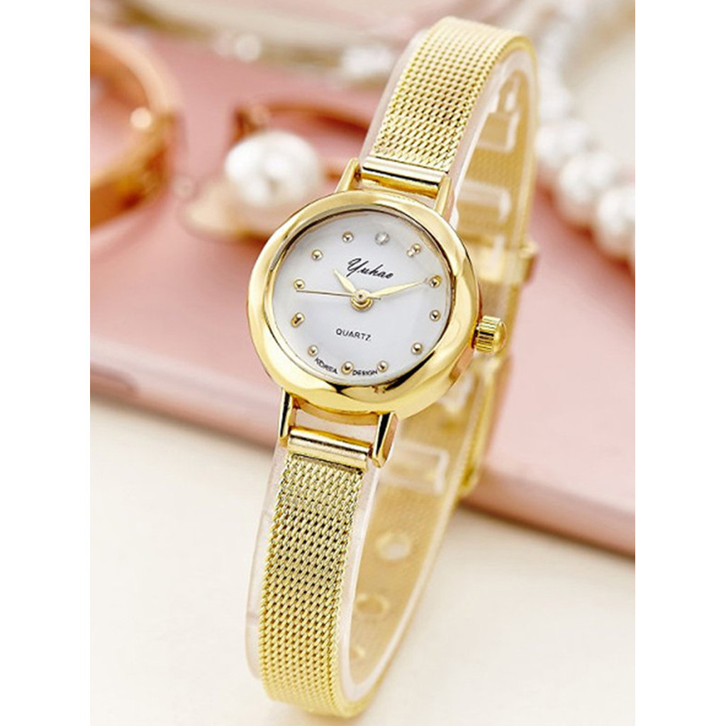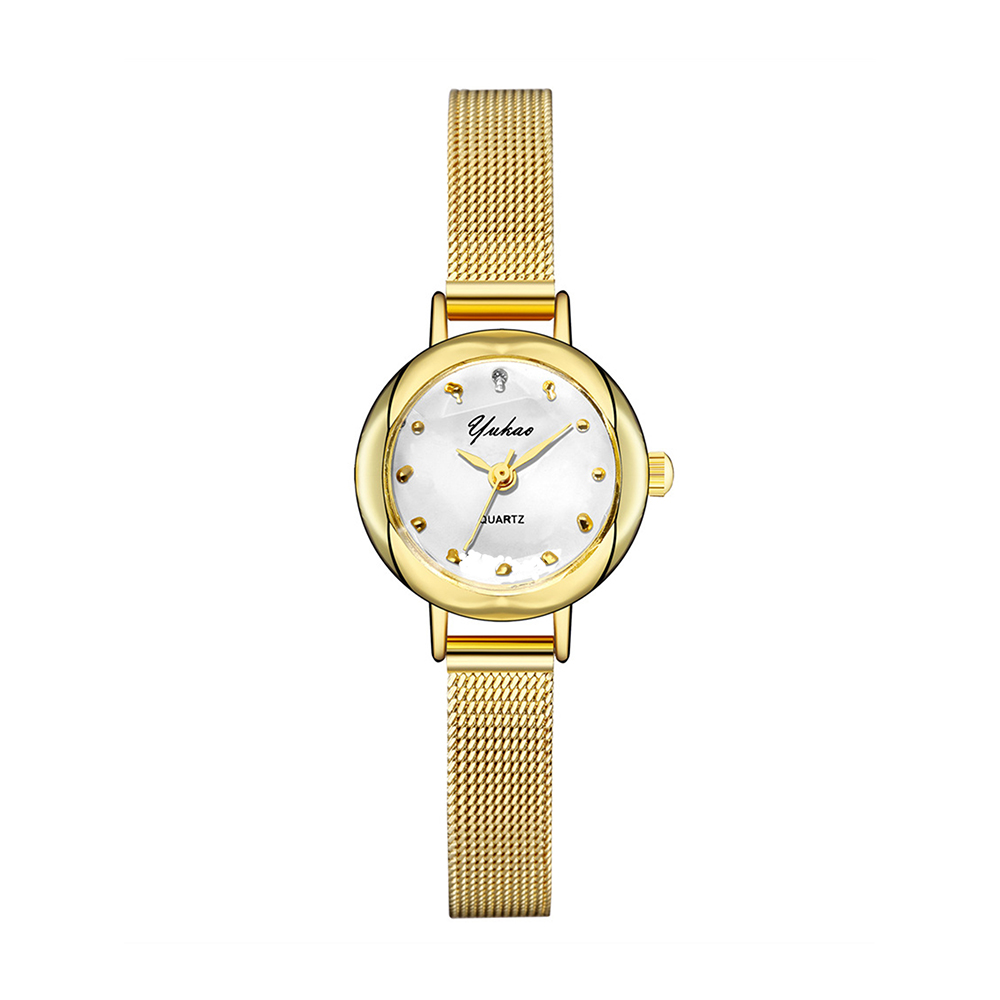 Relógio feminino minimalista redondo, quartzo de alta qualidade com pulseira de malha.
