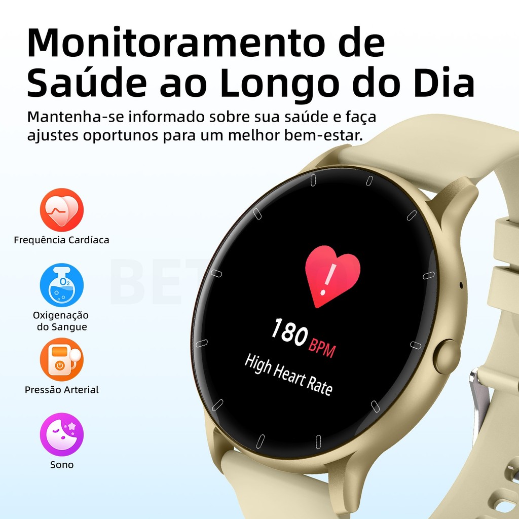 Relógio inteligente BETTDOW, à prova d'água IP67, tela IPS curva de 1,28 polegadas, chamadas Bluetooth, carteira eletrôn