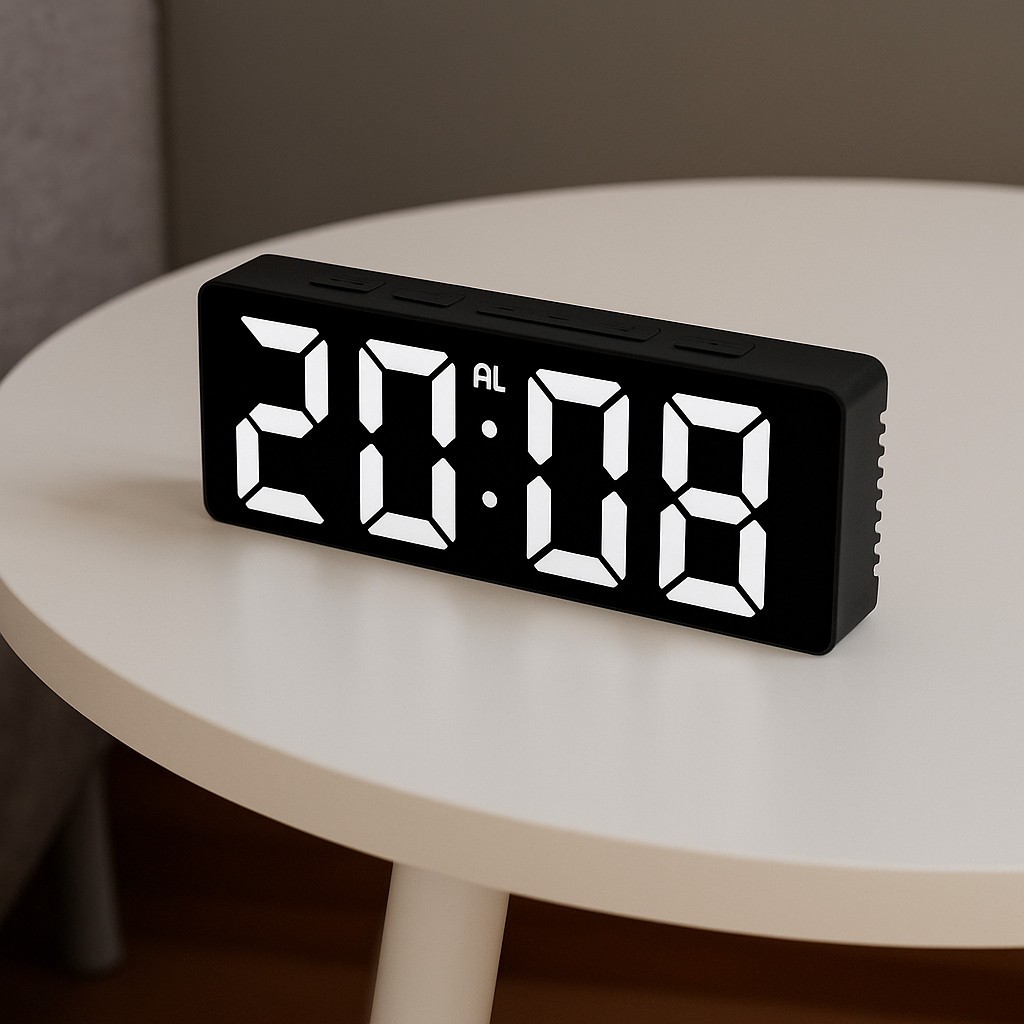 Relogio De Led Digital 16X6,5X2 Leds Brancos Data Temperatura Alarme Para Mesa E Parede