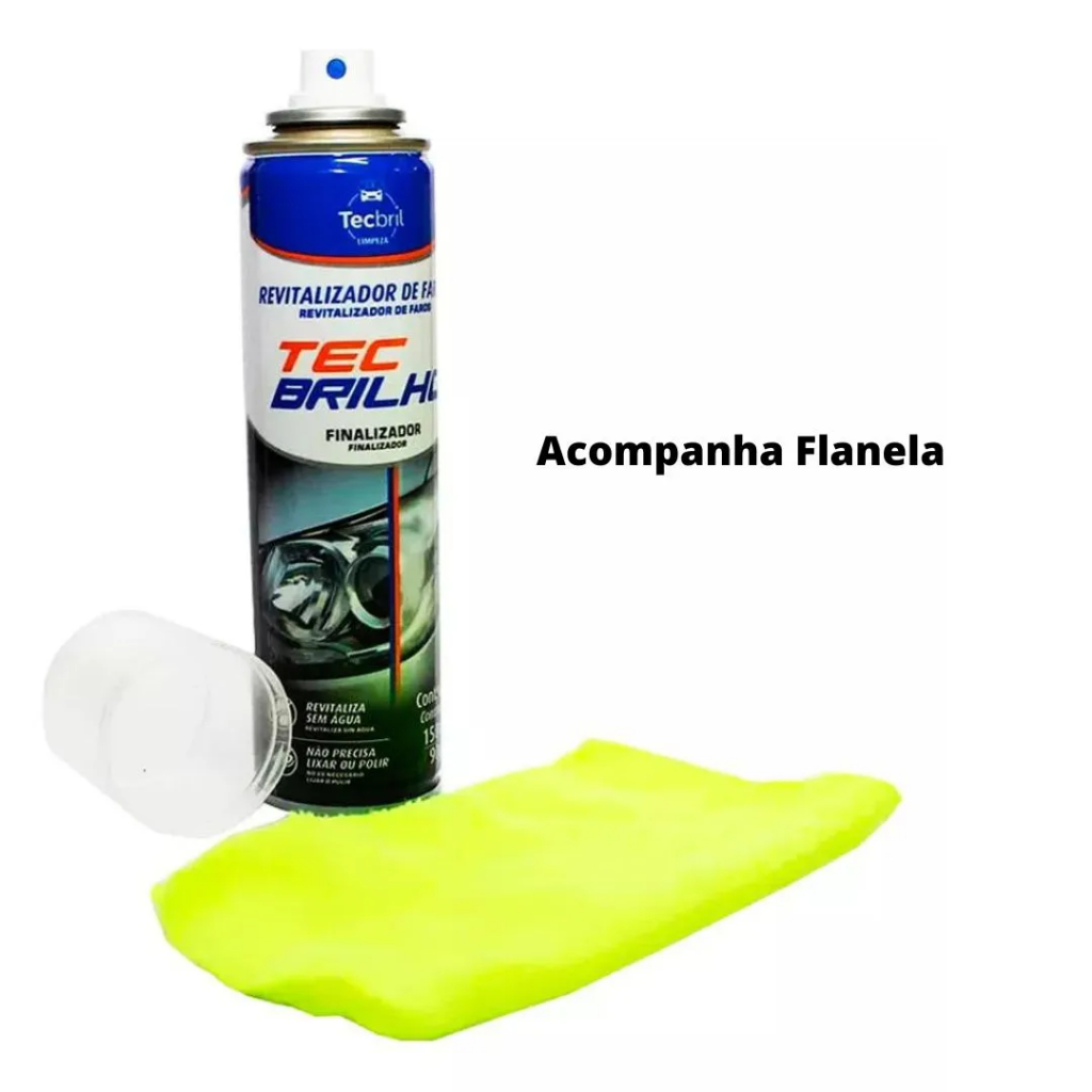 Removedor Revitalizador De Faróis Spray 150ml + Mini Flanela Limpeza Automotiva Carro Moto