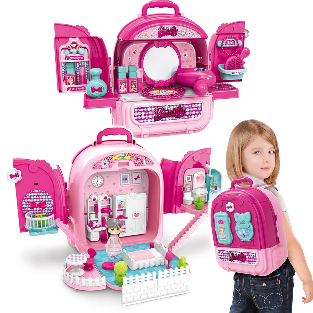 Bolsa Mochila de Maquiagem Infantil e Casinha Beauty Station 3 em 1 Portátil - Replay Kids
