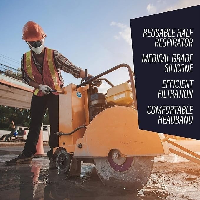 Respirador De Silicone Reutilizável , Meia Máscara De Gás Macia Com 10 Algodãos De Filtro Para Soldagem Em Madeira , 1 P