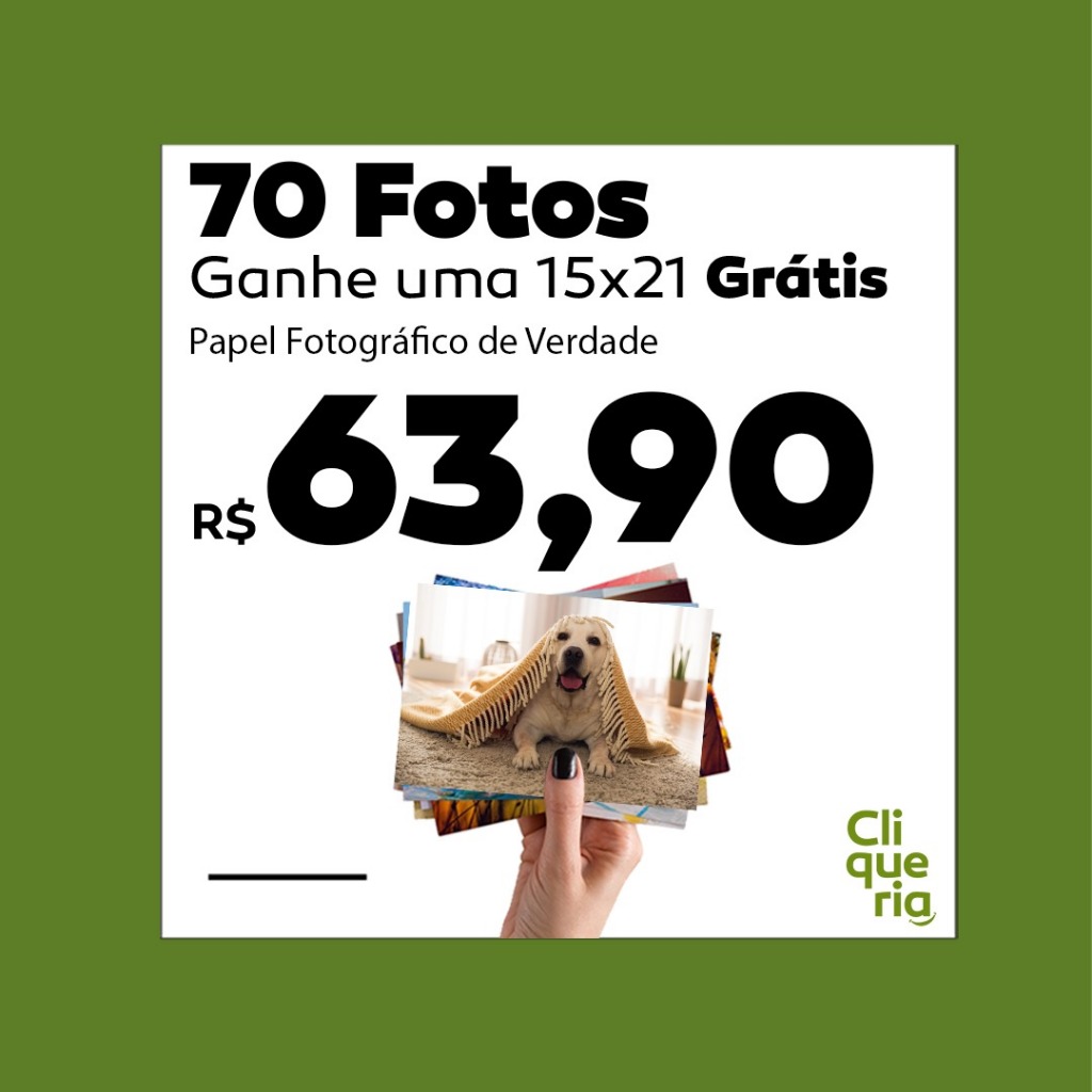 Revelação de Fotos 10x15 Cliqueria | Pacote 70 fotos