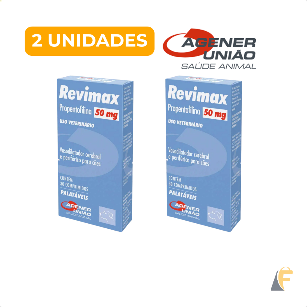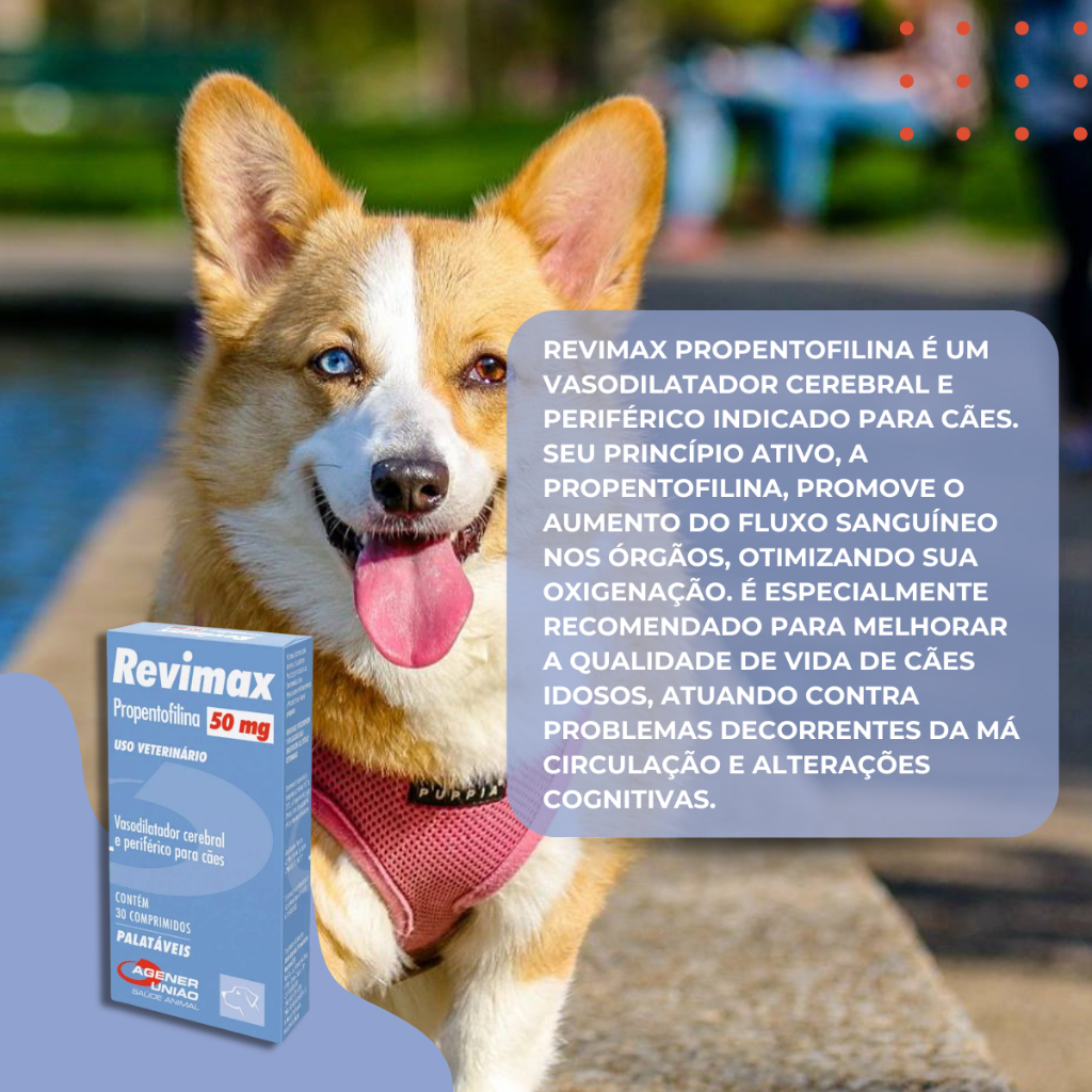Revimax 50mg 30 Comprimidos Vasodilatador Cerebral Cães Idosos Agener União + Brinde