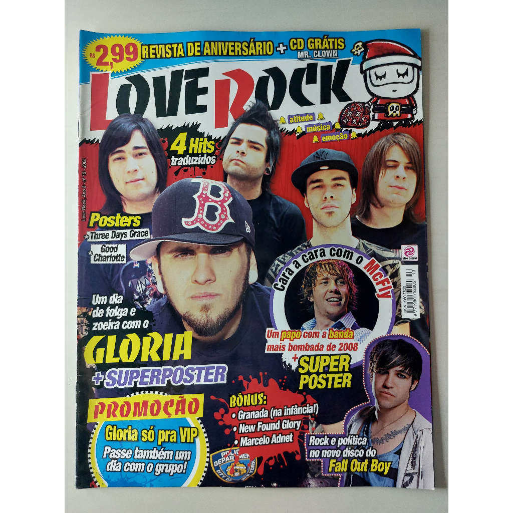 Revista Love Rock Nº 13 Gloria Tokio Hotel Three Days Grace Good Charlotte Fall Out Boy McFly New Found Glory 2008