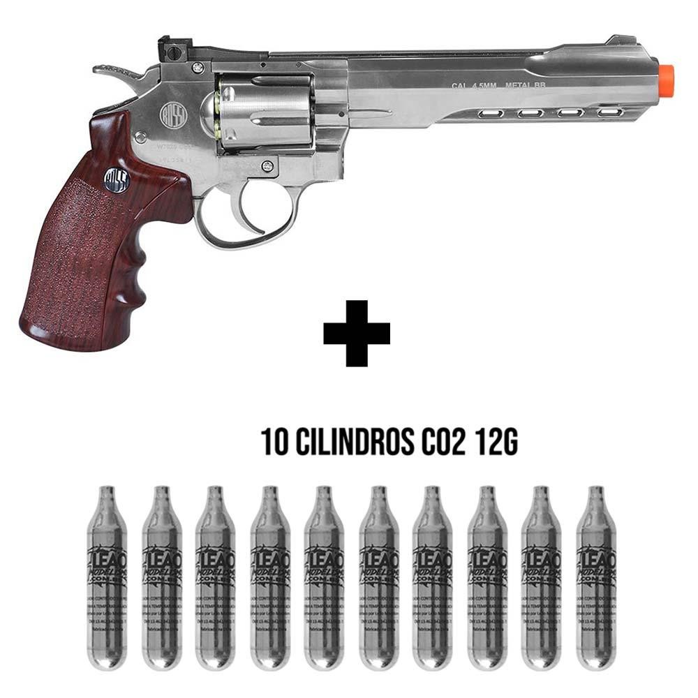 Revolver 4.5 Pressao Co2 W702s Rossi Cromado Metal + 10 Co2