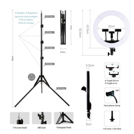 Ring Led Colorido 36cm / 14 Polegadas +suportes De Celula +tripé 2m marisa