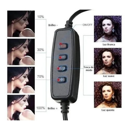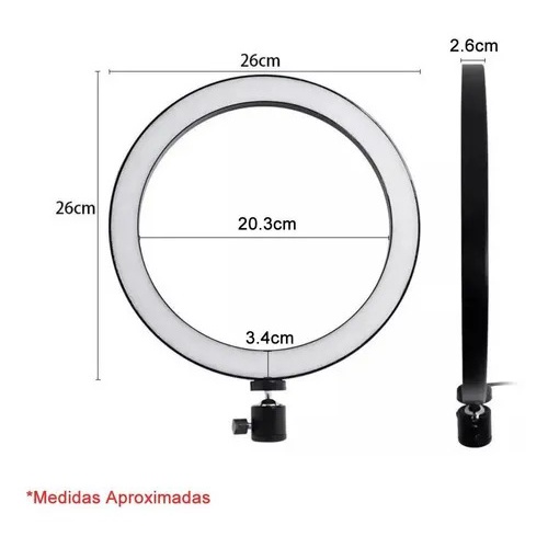 Ring Light Led Iluminador 26cm 10 Polegadas Completo 2,1m Tripé 210cm