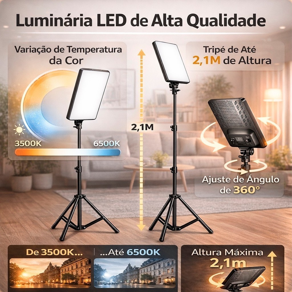 Ring linght Iluminador Led Retangular 16 19 24 Polegadas Profissional Foto Celular Tripé de 2.1m