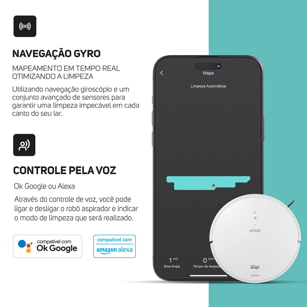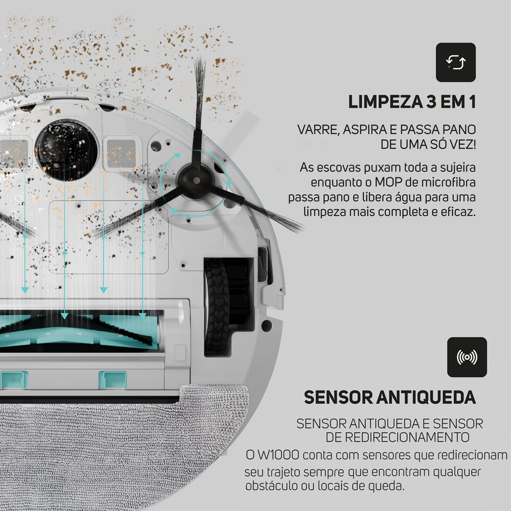 Robô Aspirador de Pó Inteligente Wap Robot W1000 Com Mapeamento Passa Pano Sensor Antiqueda