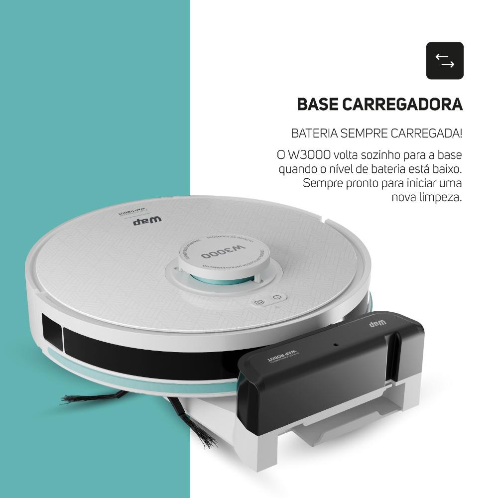 Robô Aspirador de Pó WAP ROBOT W3000 Varre Passa Pano MOP Agenda Limpeza com Controle e APP