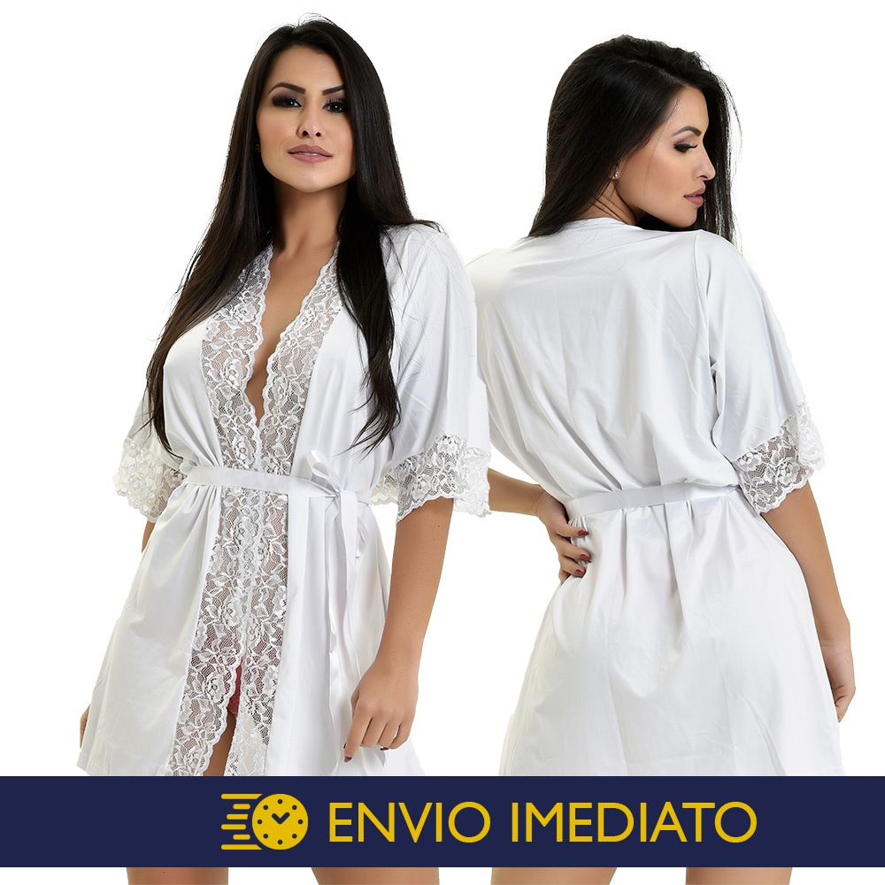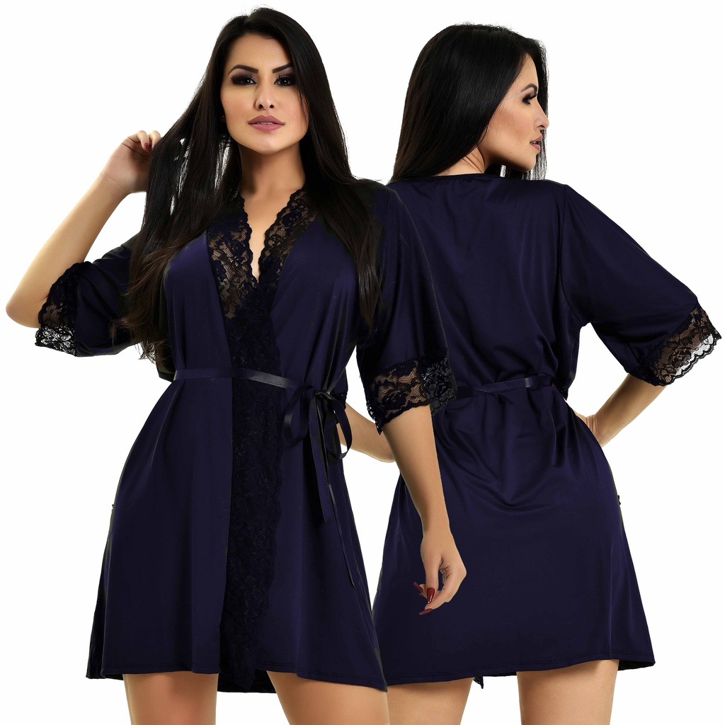 Robe Hoby Microfibra Renda Luxo Sensual Conforto Hobby Roupão Noiva Lua De Mel Roupa De Dormir | 850