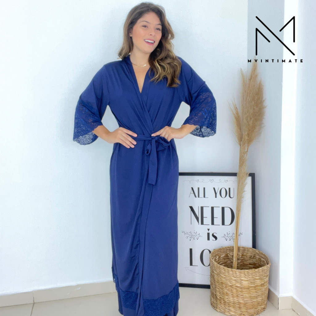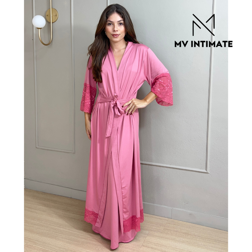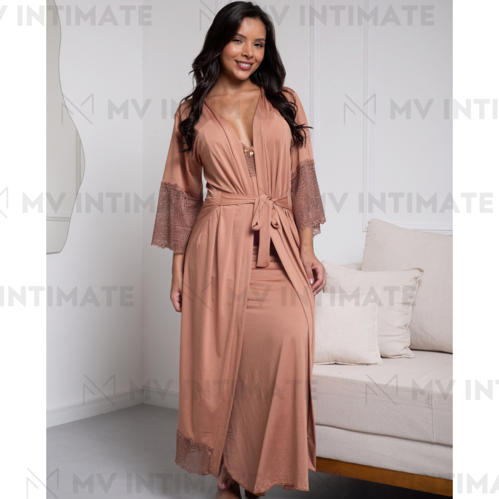Robe LONGO Roupão Feminino Noiva Renda Luxo Hobe
