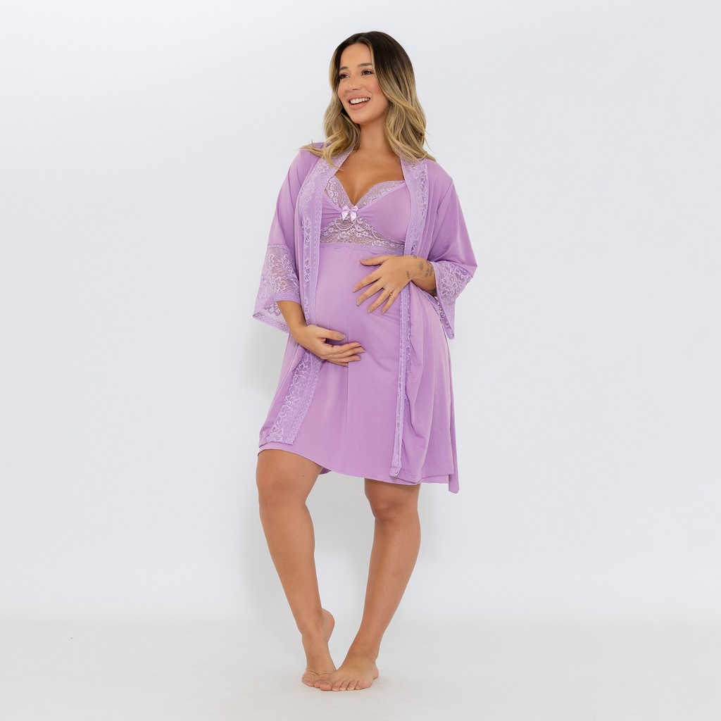 Robe e Camisola maternidade renda noite amamentação
