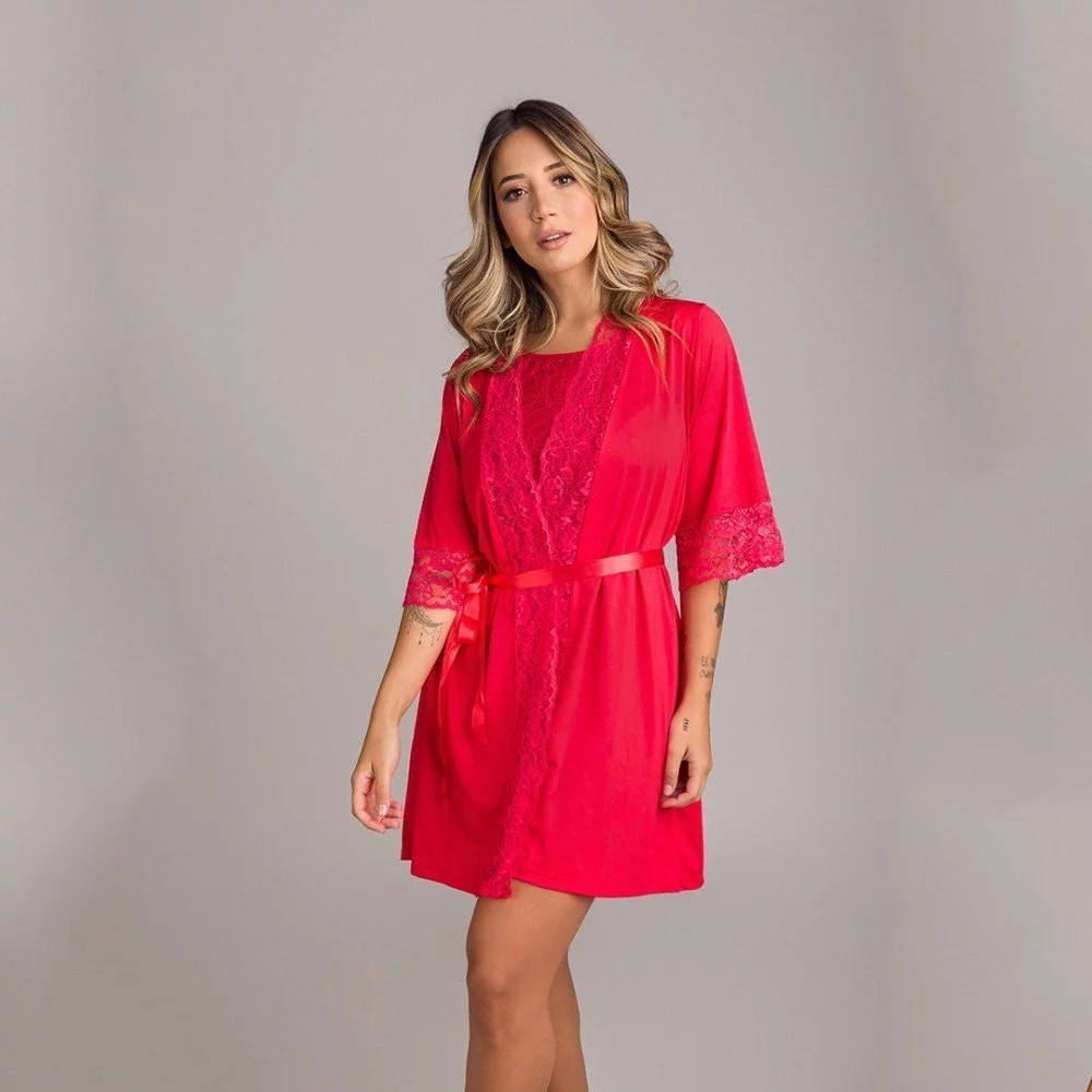 Robe em Microfibra com Detalhes em Renda