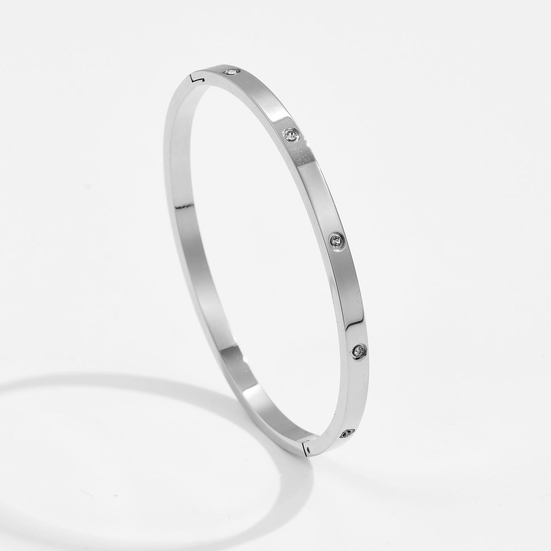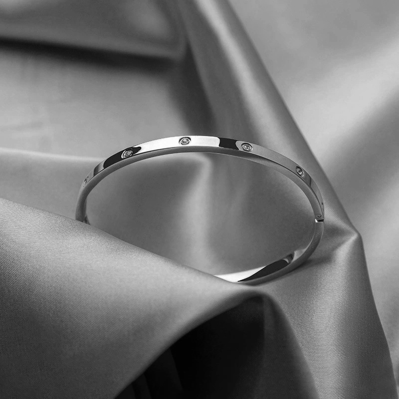 Rodada Zircão Cúbico Geométrico Feminino Ouro Aço Inoxidável Aberto Anti-Alérgico Pulseira Moda Jóias Presente
