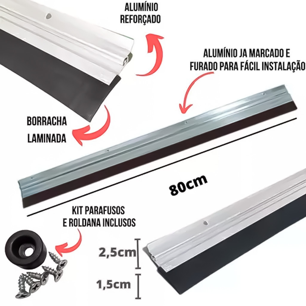 Rodo Veda Porta Protetor De Alumínio Com Borracha Vários Tamanhos Evita Insetos Sujeiras