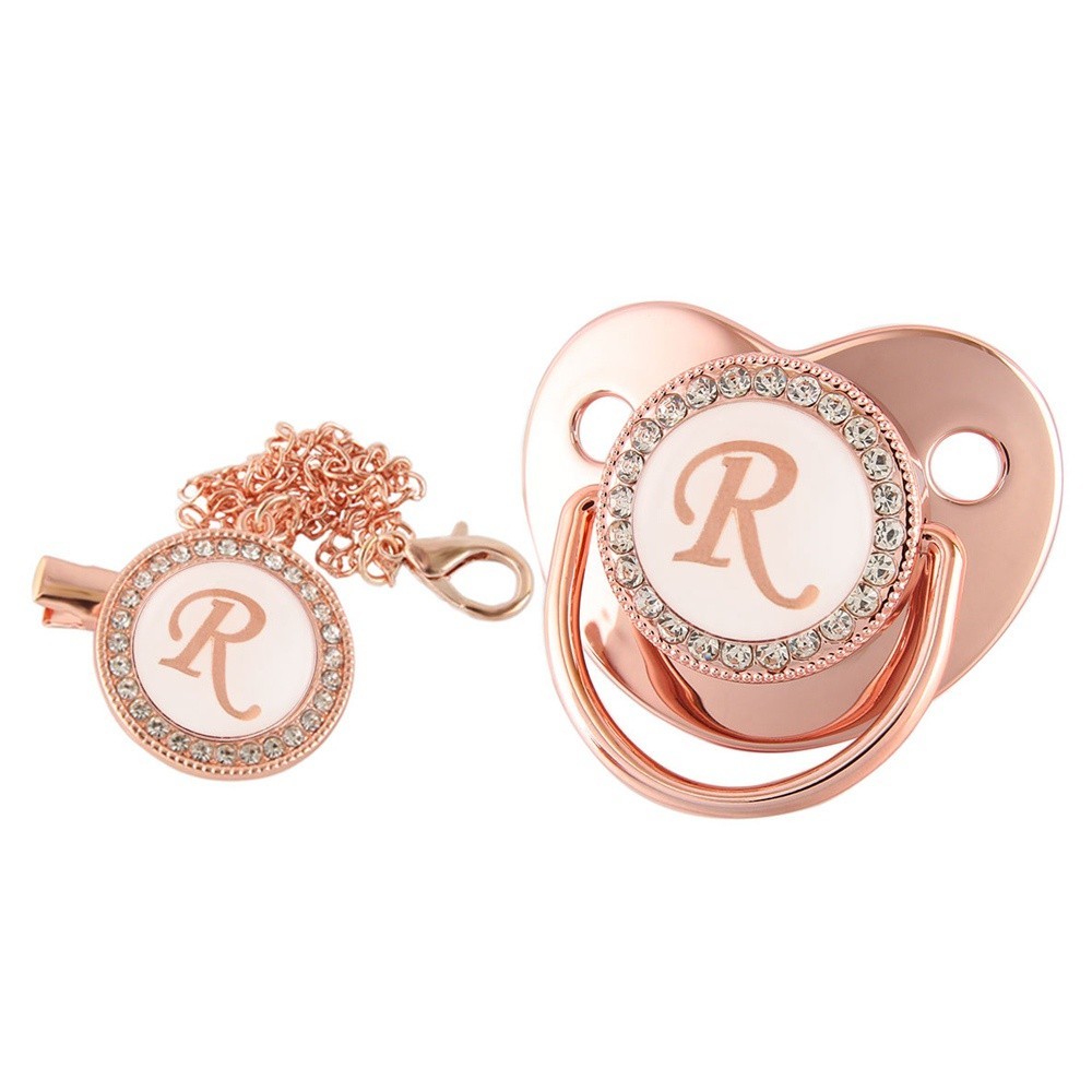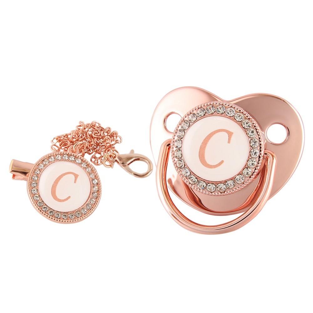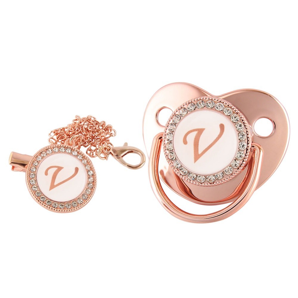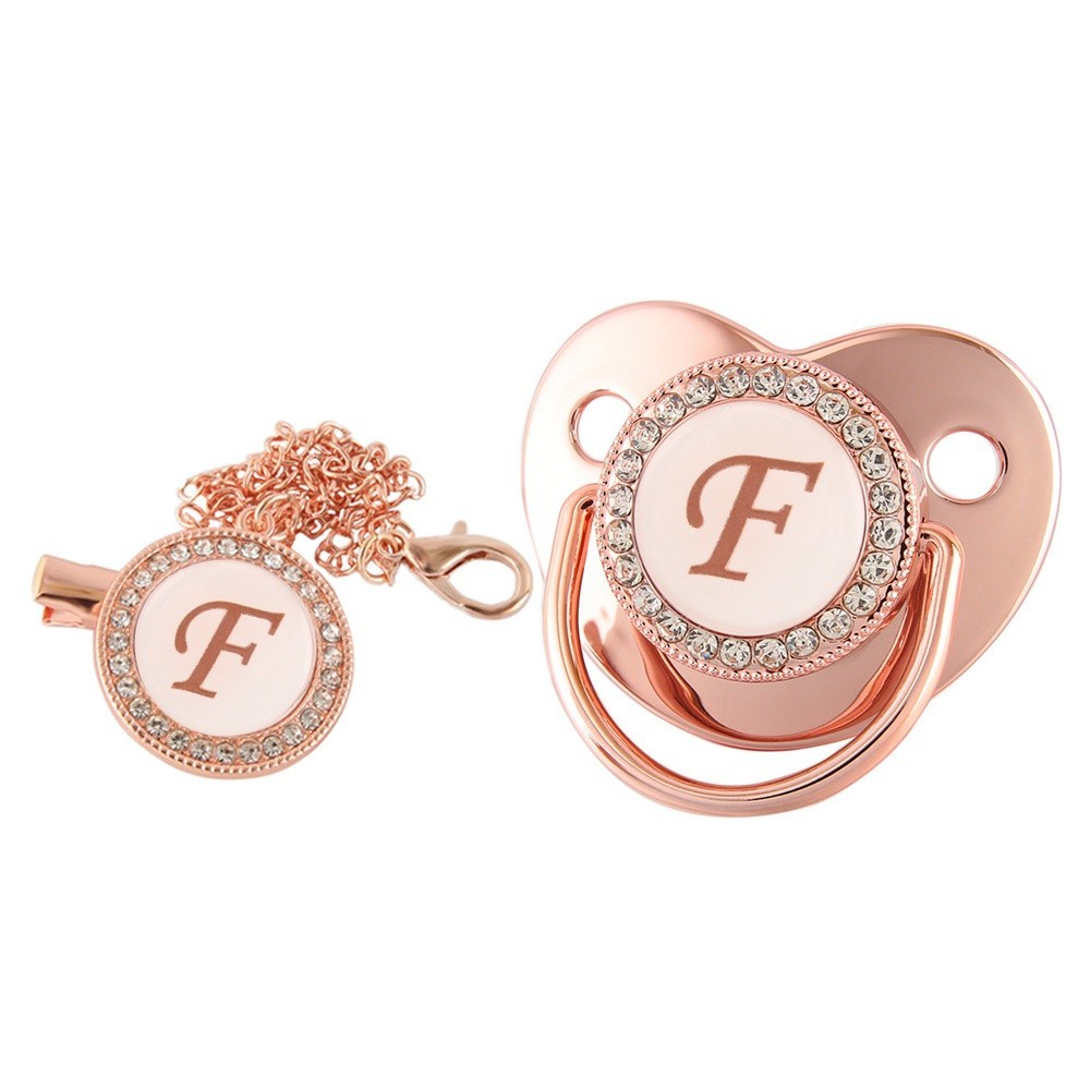 Rose Gold Baby Pacifier Com Letra De Nome Inicial , Ducha De Aniversário
