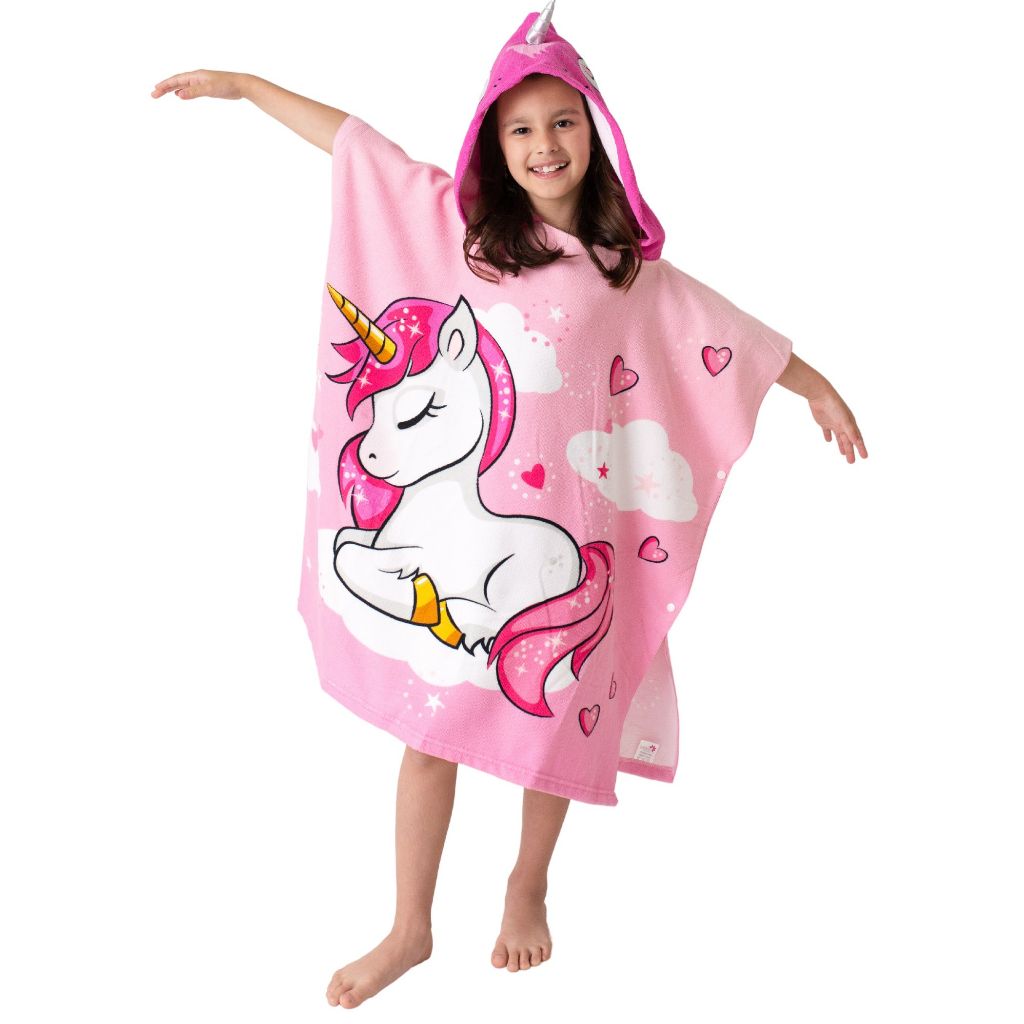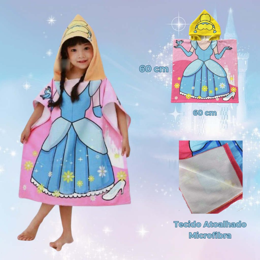 Roupão Atoalhado Infantil Menina Menino Poncho Sereia Saída de Banho Toalha para Criança Personagens