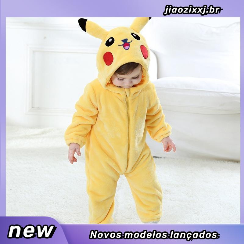 Roupas Para Bebês Jumpsuits Pikachu Pokemon Kigurumi Onesie Dinossauro Fofo Pajama Crianças Jumspuit De Inverno