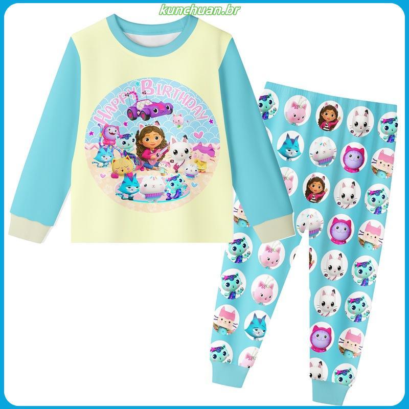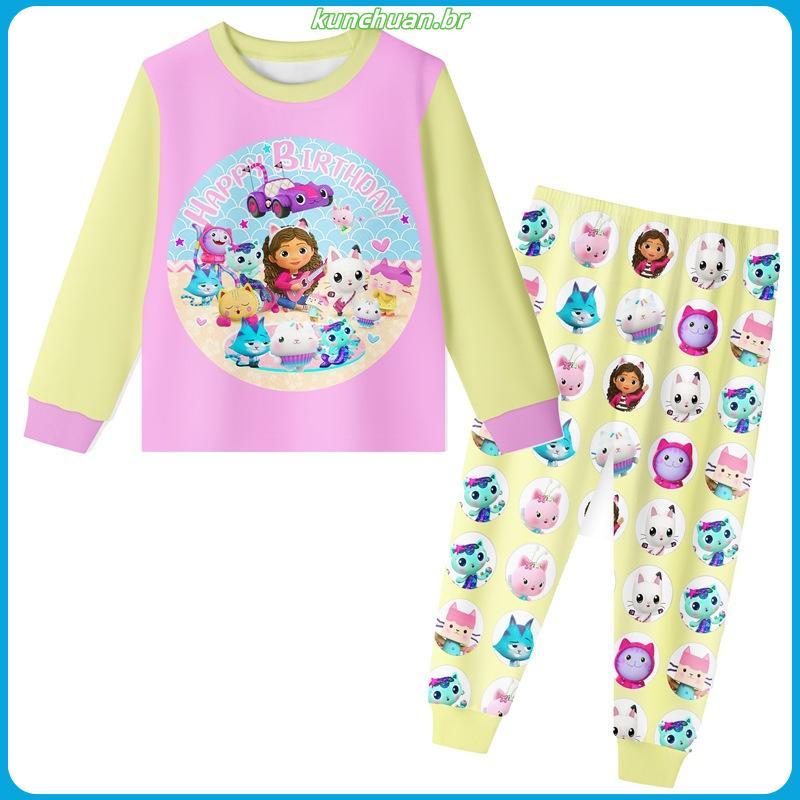 Roupas Para Bebês Meninas Gabby's Dollhouse Cartoon Movie Roupa De Dormir De Manga Comprida Terno De Pijama De 3 A 8 Ano
