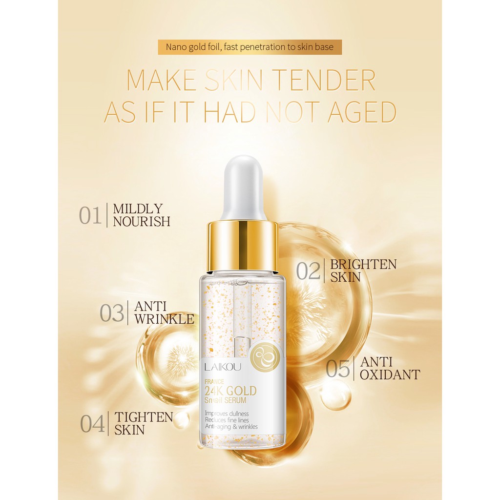 Sérum Laikou ouro 24k com extrato de caracol antirrugas antienvelhecimento clareadora de pele