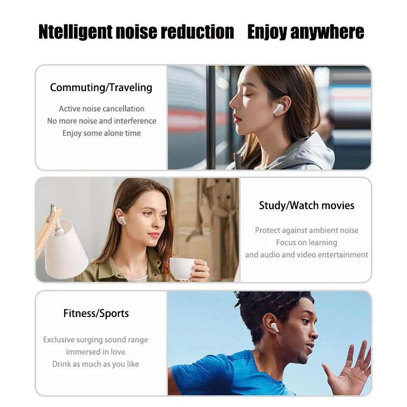 S510 Fones De Ouvido Sem Fio Bluetooth Display Digital LED Cancelamento Ruído Jogos Controle Toque