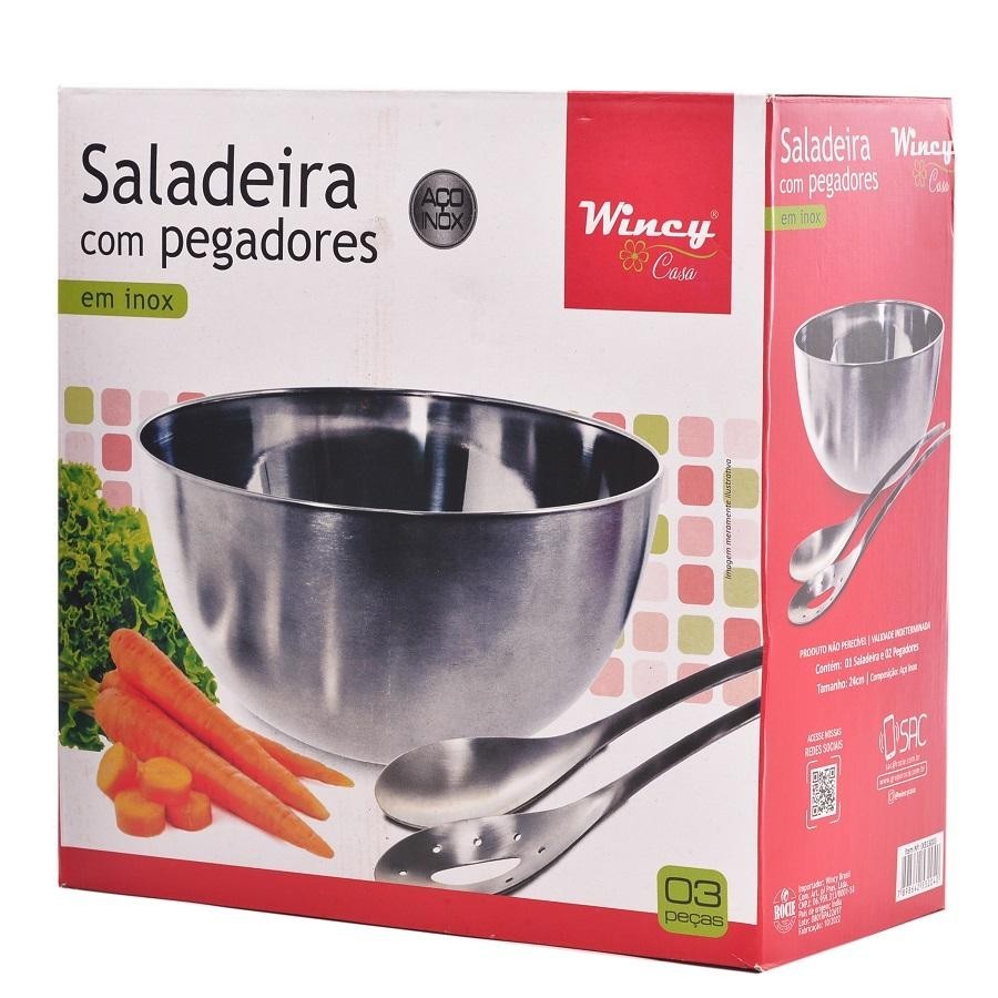 SALADEIRA 24CM C/PEGADOR 2 PECAS INOX
