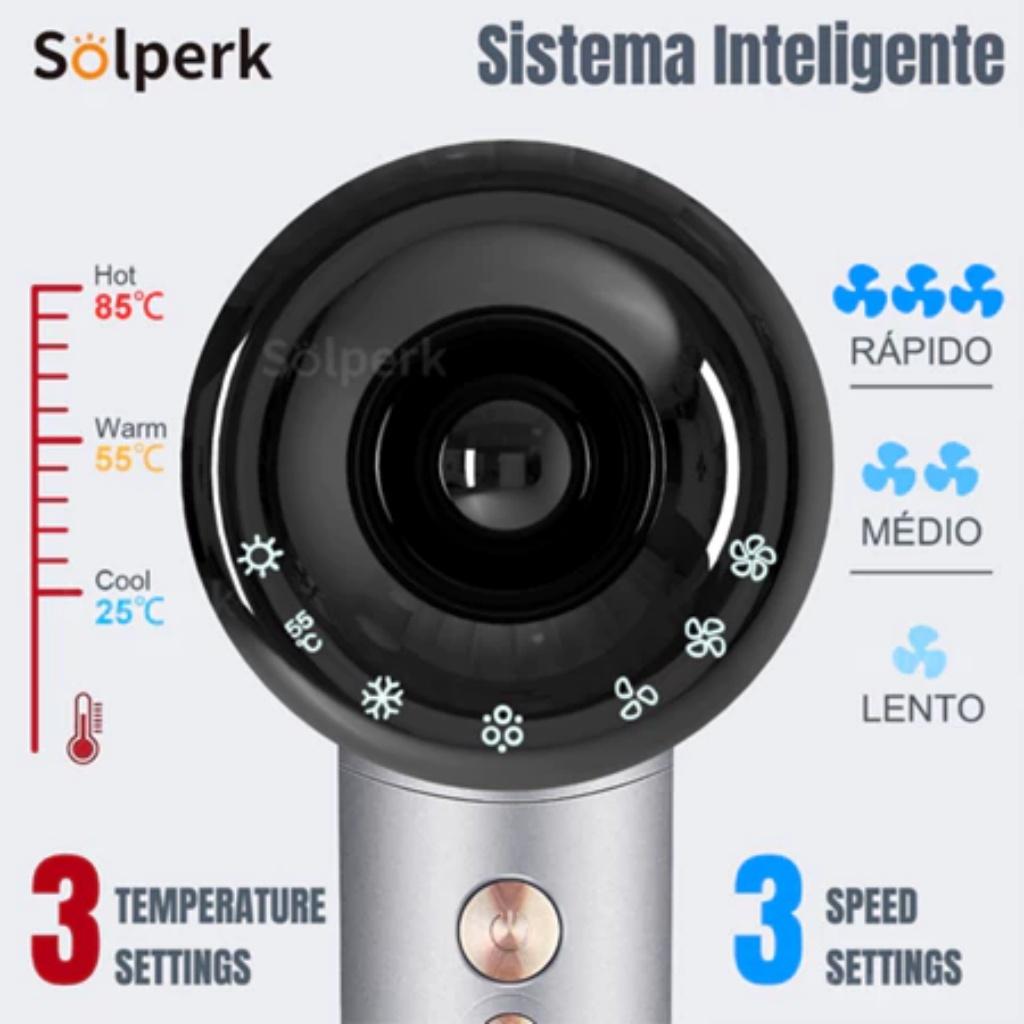 SOLPERK Secador de Cabelo de Alta Velocidade 120000 RPM com Conjunto Magnético e Secagem Rápida