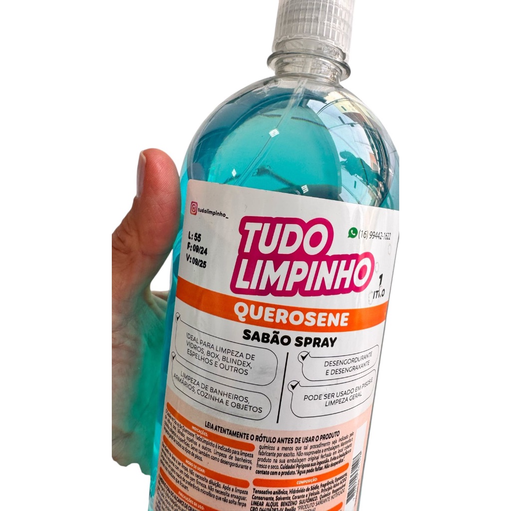 SPRAY SABÃO DE QUEROSENE LIMPA VIDROS TUDO LIMPINHO 1 LITRO