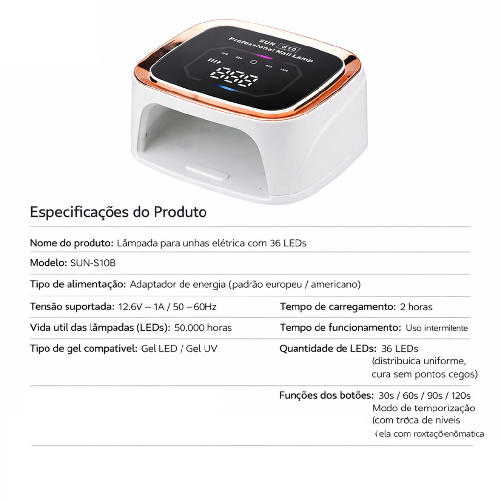 SUN S10 Cabine Sem fio c/ Bateria para Secagem Unha Gel 36 LEDs 108W Portátil Alta Performance