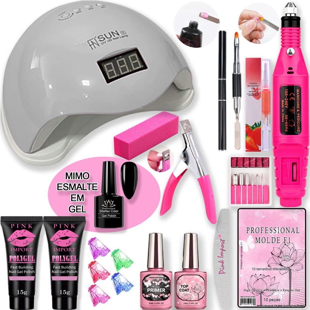 SUPER KIT MANICURE PROFISSIONAL – ALONGAMENTO, BLINDAGEM + CABINE 48W GEL OU POLYGEL AF