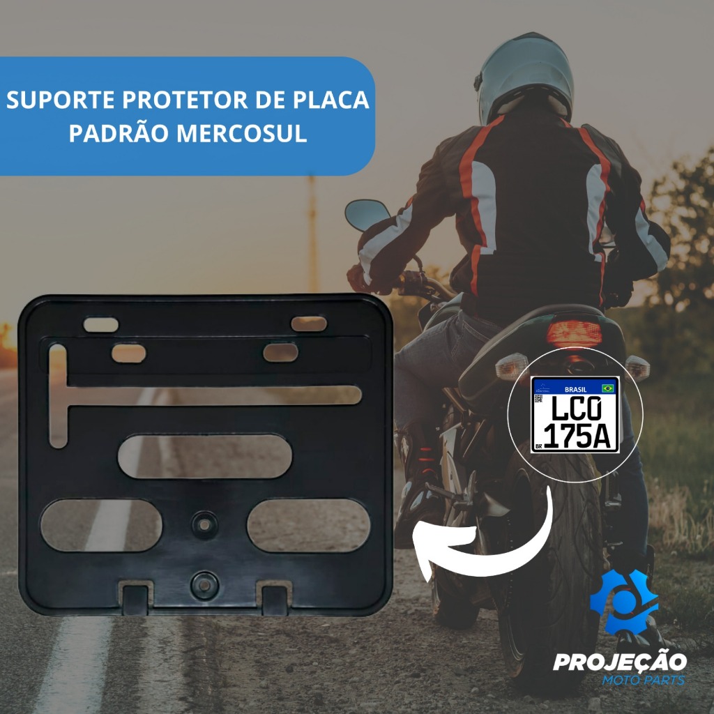SUPORTE PROTETOR DE PLACA MOTO MERCOSUL COM PARAFUSO E LACRE EM PLÁSTICO