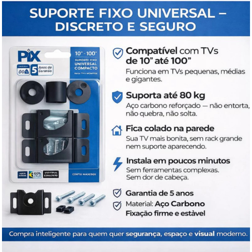 SUPORTE TV FIXO UNIVERSAL 10'' A 85'' - COMPACTO